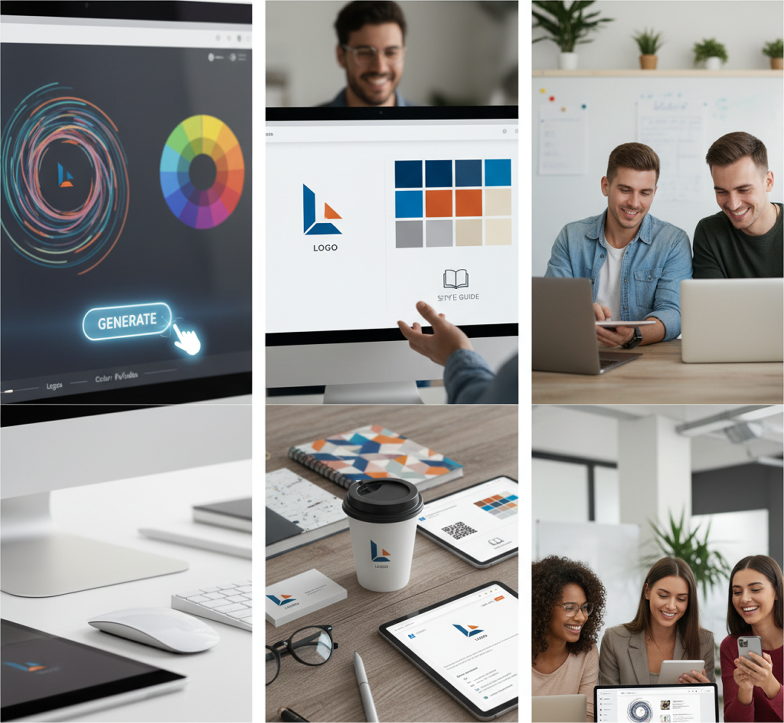 The AI operates within a cohesive visual framework from the start, ensuring every generated asset—from logo to color swatch—is inherently on-brand.