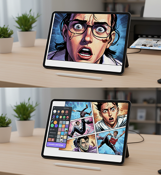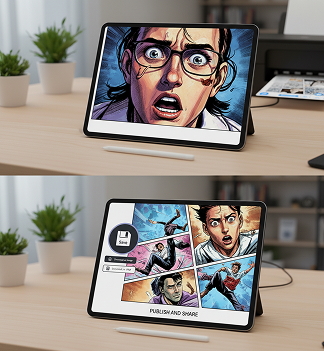 Comic art is time-consuming and expensive. Commissioning pages from artists drains budgets and extends deadlines. Learning to draw professionally takes years. The dream of publishing regularly becomes a constant source of frustration.