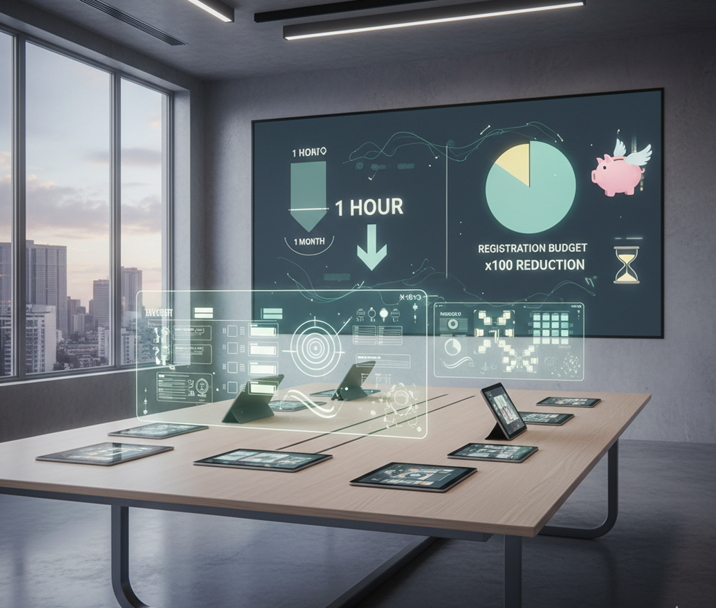 Event design is a bottleneck. Ordering a complete set of materials from an agency requires weeks of planning and significant costs. Searching and coordinating with freelancers for each element (poster, presentation, installation) takes time and effort. As a result, preparing for the event turns into an expensive and nerve-wracking process.