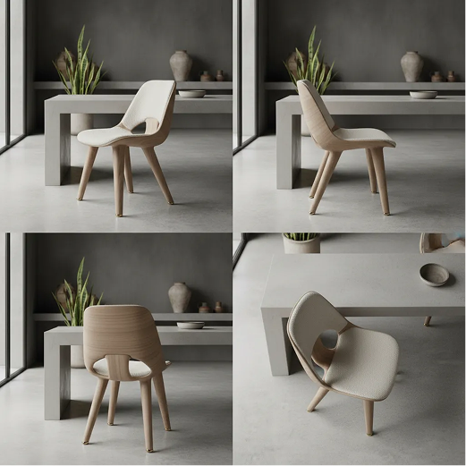 The AI Designer That Understands Your Aesthetic. Upload your brand ethos, material palette, or inspiration boards. Our AI becomes your creative director, applying your design principles to generate cohesive furniture forms across categories—chairs, tables, storage. Every generated concept will be 100% aligned with your collection's design DNA.