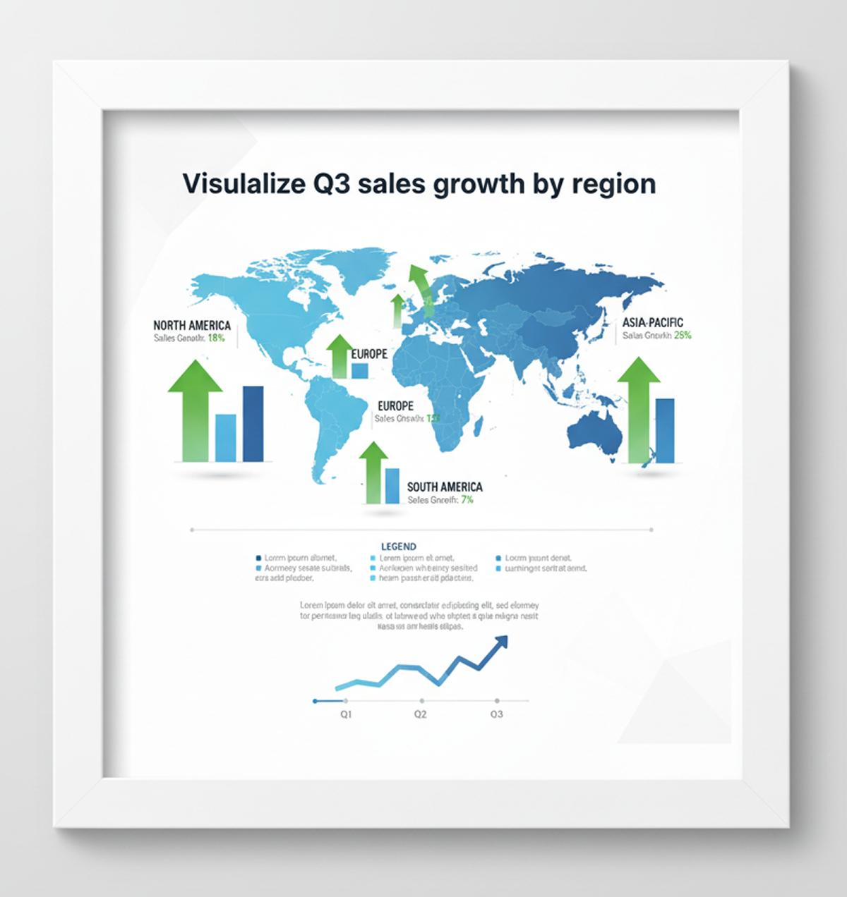 Data design is expensive and slow. Ordering complex infographics from a specialist requires time and a significant budget. Self-assembly in professional editors takes hours and requires skills. As a result, data visualization becomes a barrier, not a help.