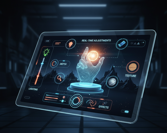 You can convert logos to 3D format, add metallic, neon, grunge or other effects, adjust depth, lighting and textures — all with high precision and control.