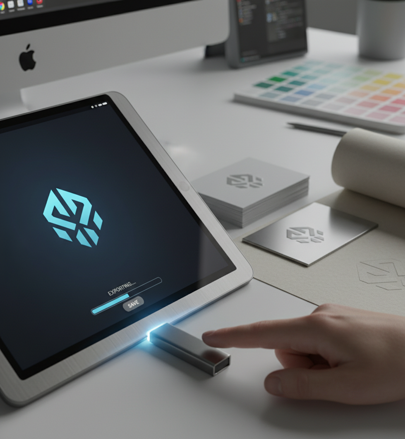 Exporting your transformed logo is simple and versatile, giving you full control for any application, from digital screens to high-quality print.