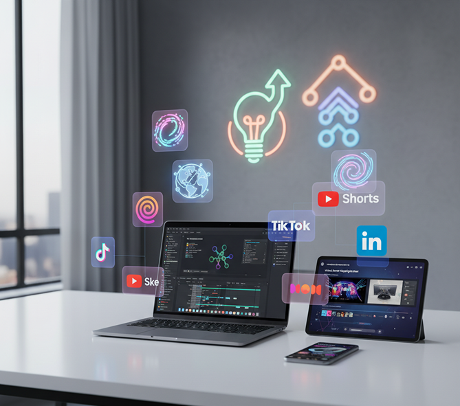 Stop struggling with complex video production. Go from concept to a polished, social-ready MP4 in seconds. Generate, customize, and publish engaging short-form videos with AI. Build a dynamic and consistent video presence across platforms—without production bottlenecks.