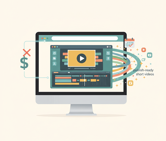 A full video production studio in your browser. For free. Create engaging, publish-ready short videos in minutes—not weeks. Our tool eliminates the cost and complexity of video production, preserving your marketing budget and content calendar.
