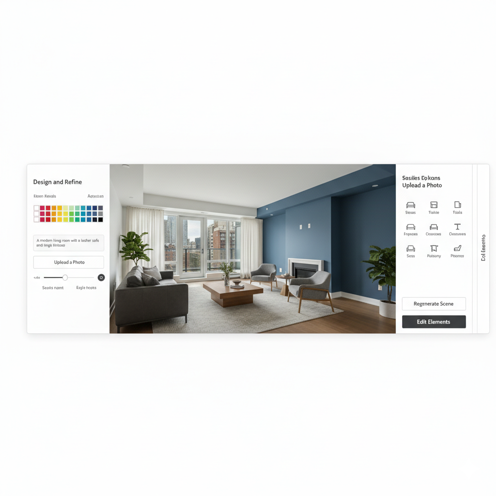 Need a different wall color? A new decor style or furniture set? Use the tools to adjust the design, modify the layout, and choose the perfect visual style. You can regenerate the entire scene or edit specific elements as much as you want.