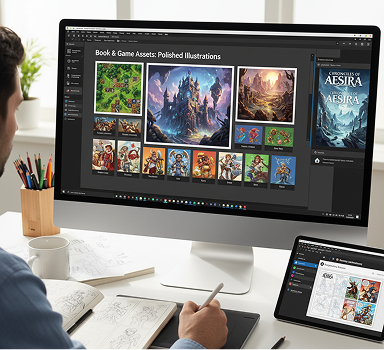 A portfolio that looks inconsistent. When illustrations for different projects—books, games, presentations—are created separately or by different artists, the visual style becomes fragmented. Line quality, color palettes, rendering techniques, and lighting don’t match, making your work look unprofessional and disjointed. This weakens your artistic identity and reduces client trust.