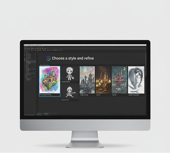The AI understands artistic styles and mediums. From watercolor and digital painting to ink sketches and concept art, it adapts the final rendering to match your creative vision.
