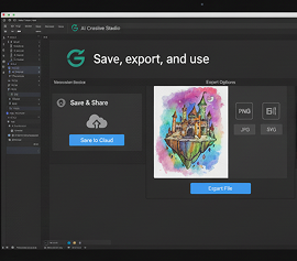 Exporting your finished illustration is simple and flexible. You retain full control over format, resolution, and finishing touches—and can return to make edits anytime.