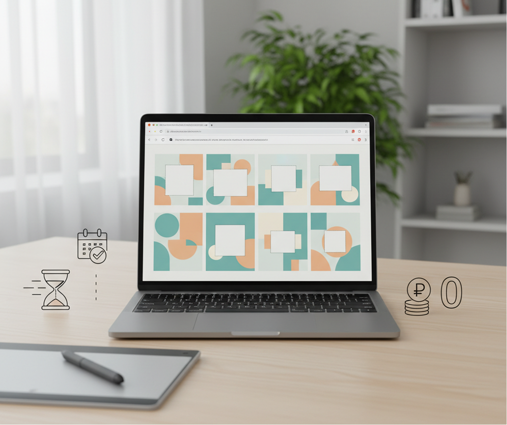 Social media design is expensive and slow. Ordering templates from an agency takes time and money. Working with freelancers is accompanied by lengthy approvals and edits. Self-creation in graphic editors takes hours and often does not produce professional results. The content plan is turning into a constant headache.