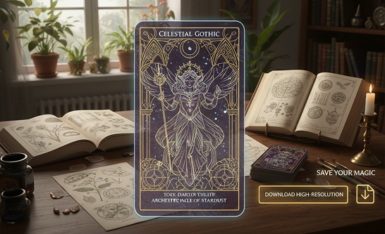 The AI understands tarot archetypes and mystical aesthetics. From classic Rider-Waite symbolism to modern abstract interpretations, it adapts the visual style to match your deck's spiritual or artistic theme.