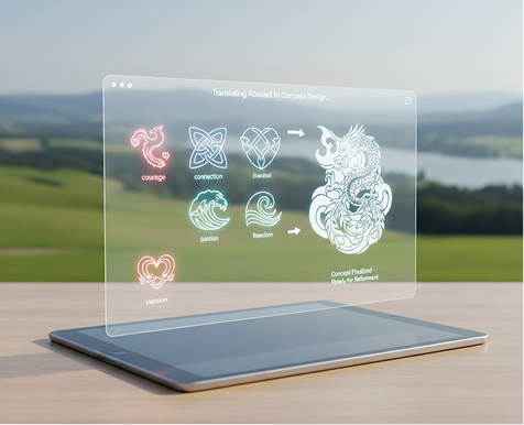 Your AI-Powered Concept Artist. The generator acts as your personal concept artist. Describe your desired themes, symbols, styles, and emotions. Our AI will translate your abstract ideas into a clear, concrete design, providing a solid foundation that you can refine and confidently present to your tattoo artist.