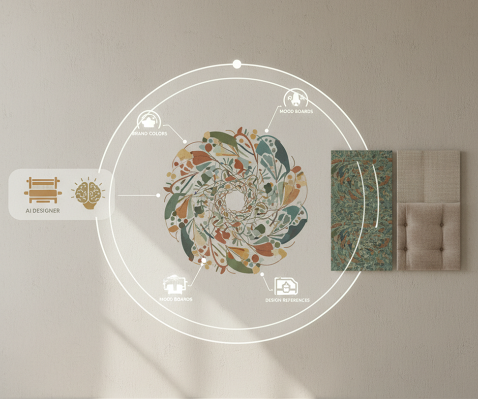 The AI Designer That Understands Your Visual DNA. Upload your brand colors, mood boards, or design references. Our AI becomes your textile and surface pattern director, applying your aesthetic principles to generate cohesive, scalable patterns across applicationsโfabrics, wallpapers, upholstery. Every generated pattern will be 100% aligned with your project's creative vision.