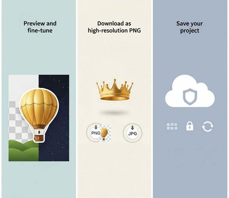 Everything works directly in your browser. Save your transparent projects and access them securely from any device, anywhere.