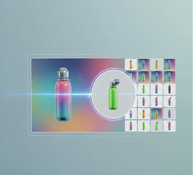 AI as your in-house asset generator. Generate hundreds of cohesive transparent PNG variations—from adjusting angles and colors to creating entirely new product views or character expressions. This tool becomes your endless source of ready-to-use visuals, helping you build a rich, flexible asset library that grows with your brand—always clean, always on-style.