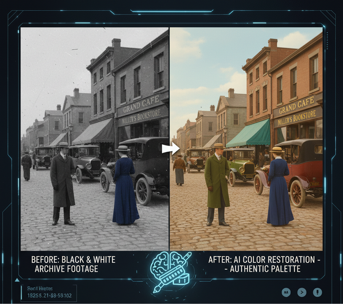 "We had to use black-and-white stock footage for a period drama flashback. Colorizing it seamlessly integrated the clip into our full-color film. The director was amazed."