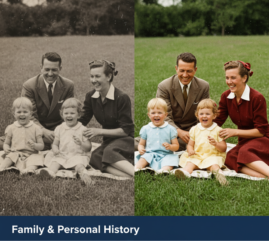 - β¦ Family & Personal History β Bring color to weddings, holidays, and childhood memories captured on old film.