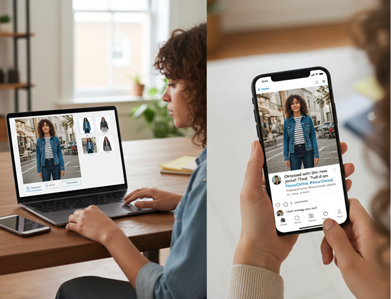 Export high-resolution try-on images that look authentic, with accurate lighting, shadows, and fabric textureβperfect for confident online shopping and social sharing.