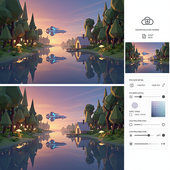 Adjust the poly count, color palette, lighting, or style with a single click. No need to manually remodel or re-texture from scratch.