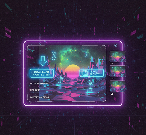 Reusing the same glitch or neon template gets predictable. How do you keep generating visuals that feel fresh but still belong to your chosen aesthetic? Overused effects lose their edge. You need a way to explore new variations within neon, glitch, and synthwave—without breaking the vibe.
