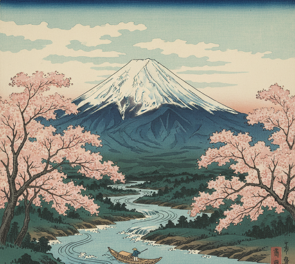 Enter a text prompt inspired by classic themesâlike "Mount Fuji with cherry blossoms," "geisha by a moonlit pond," or "samurai in a bamboo forest." Use descriptive, poetic language for best results.