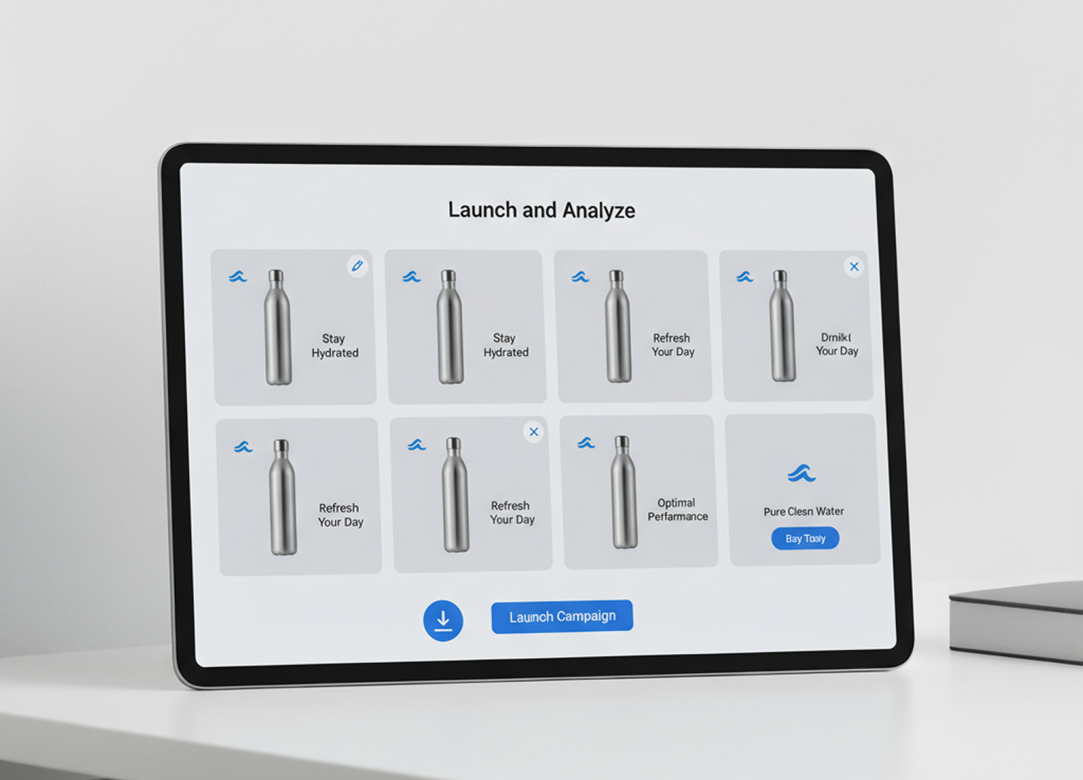 See all your variants live in a comparative grid, with the freedom to edit or remove any instantly. When ready, download the entire set in platform-ready formats and launch your test to find the winning ad.